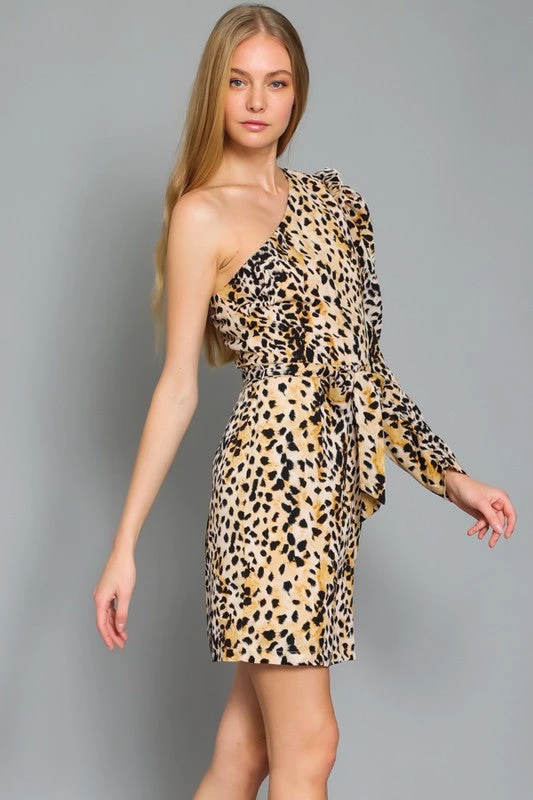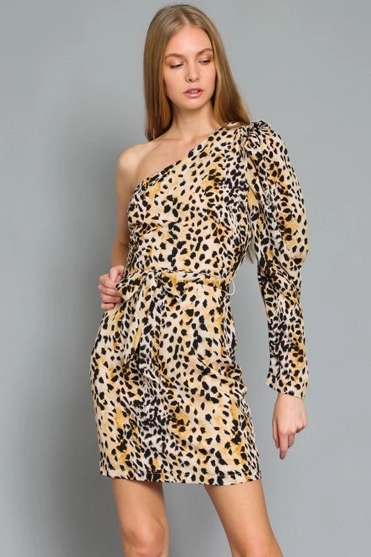 Are you searching for a super cute mini dress that shows your wild side? Check out our leopard print one shoulder bodycon mini dress
