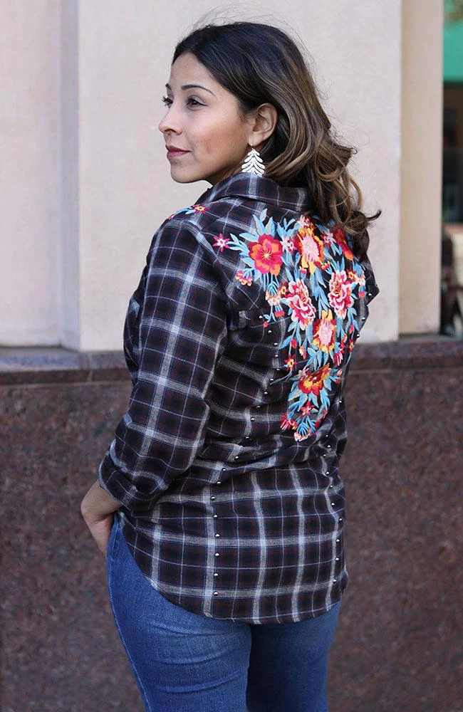 Are you looking for a great top to show your cowgirl vibes? Check out our plaid navy button-down cowboy top