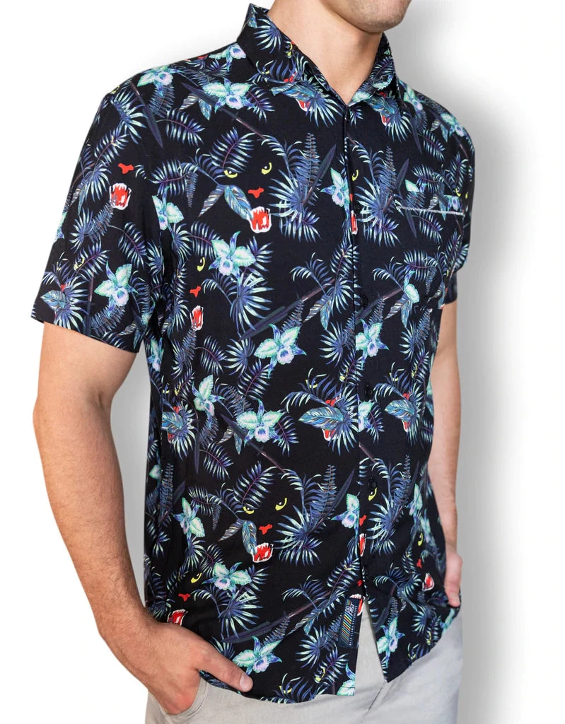 Are you looking to steal the show and show them your wild side? You will surely hit them hard with our new Baha Llama panther nighthawk button-up shirt
