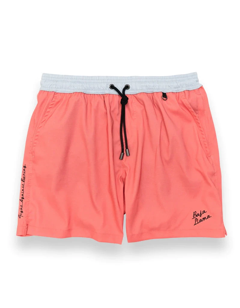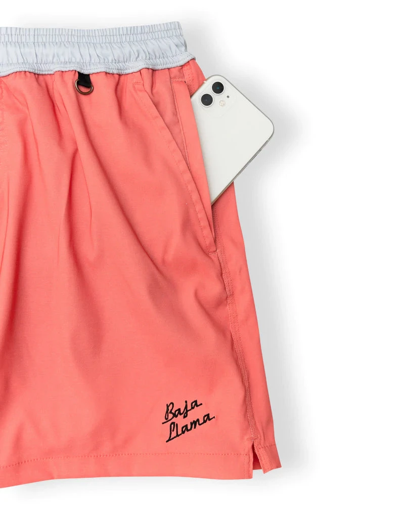It’s summer and you need some swim trunks with some color. You will love our Baja Llama salmon companion stretch swimsuit. These trunks have an awesome 4-way stretch and moisture-wicking technology for quick dry and a 6.5 inch inseam