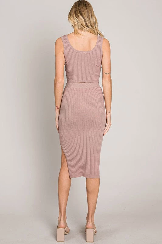 Are you looking for the perfect fitted midi skirt to pair with your favorite tops? You will love our mocha colored large rib knit midi skirt