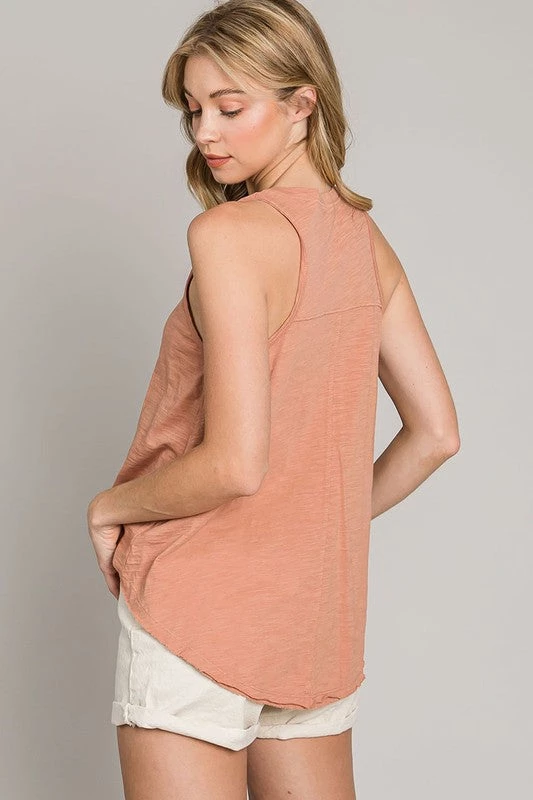 Are you looking for that stylish and carefree tank top to pair with your favorite denim? You will love our rust colored v neck dye cotton tank top