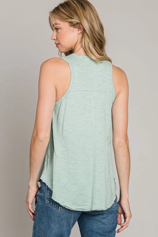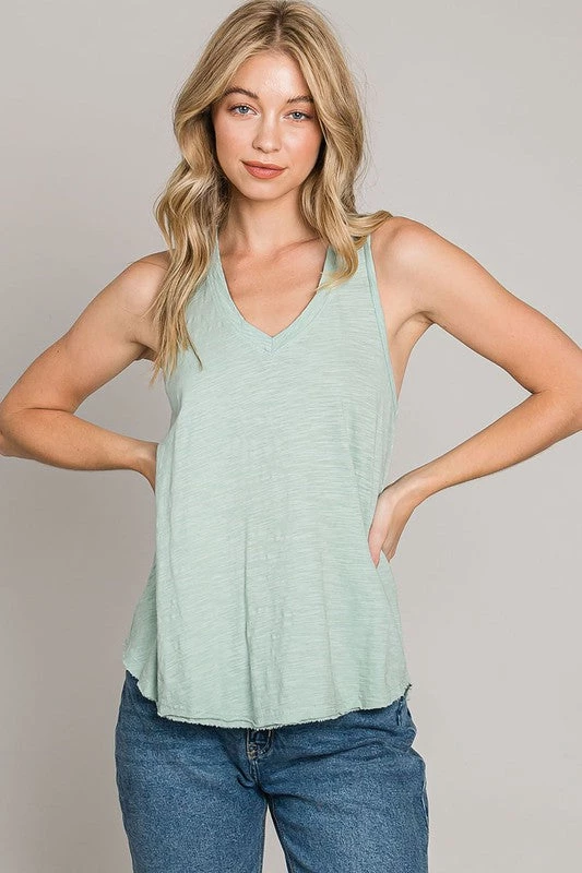 Are you looking for that stylish and carefree tank top to pair with your favorite denim? You will love our mint v neck dye cotton tank top