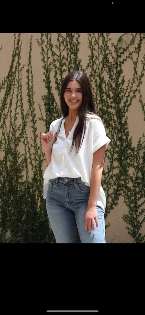 Are you looking for a super cute lightweight summer top that will look great with denim or cotton shorts? You will love our off white colored short sleeve v neck top