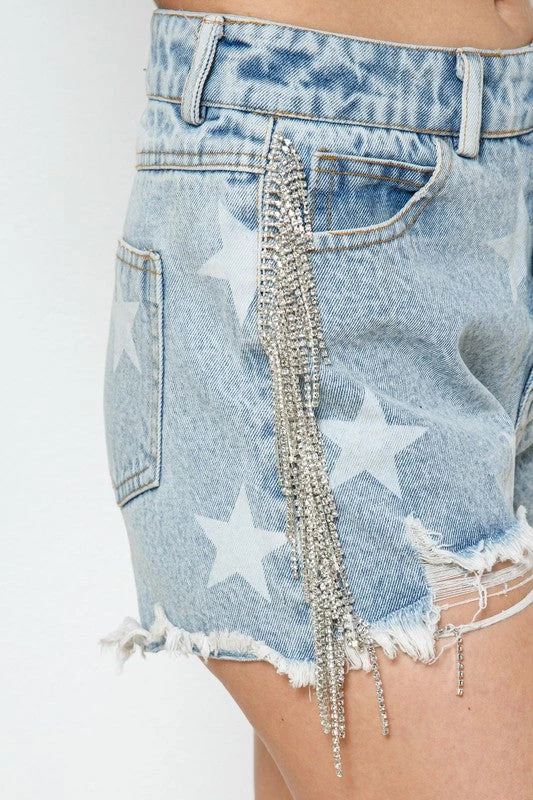 Are you looking for some cute denim shorts with some pizazz? Check out our star denim and rhinestone shorts paired with your favorite sneakers or wedges