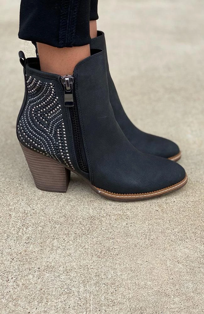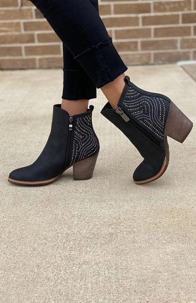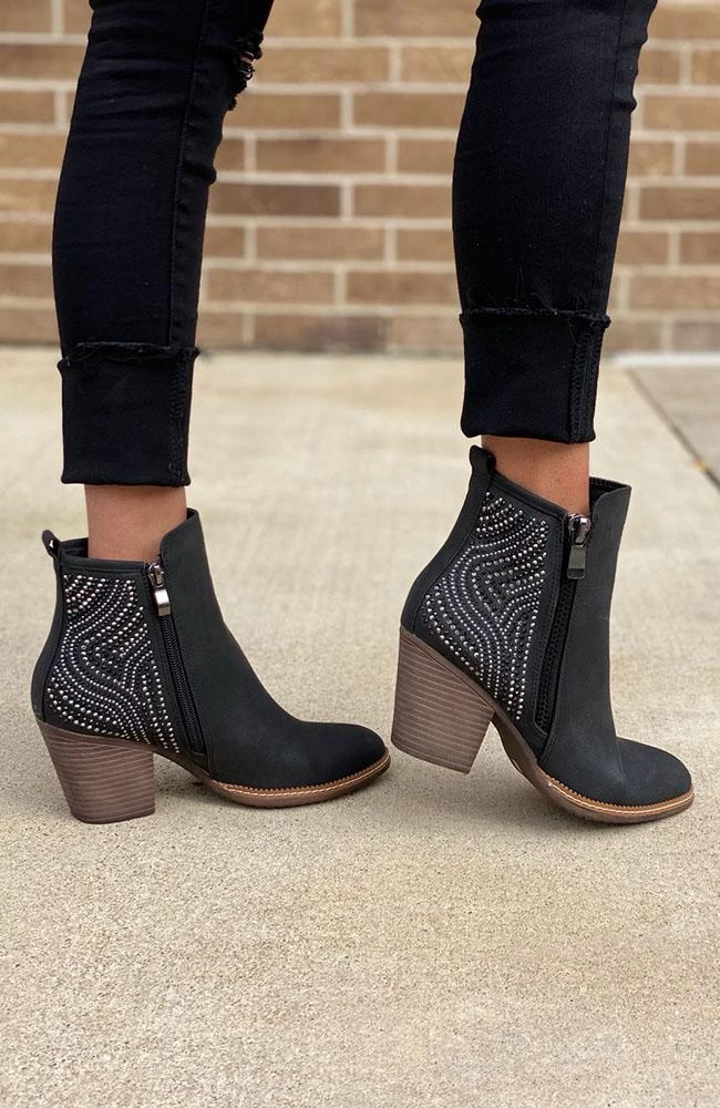 Are you searching for the perfect black bootie? Check out our black booties with a side zipper detail and beaded design