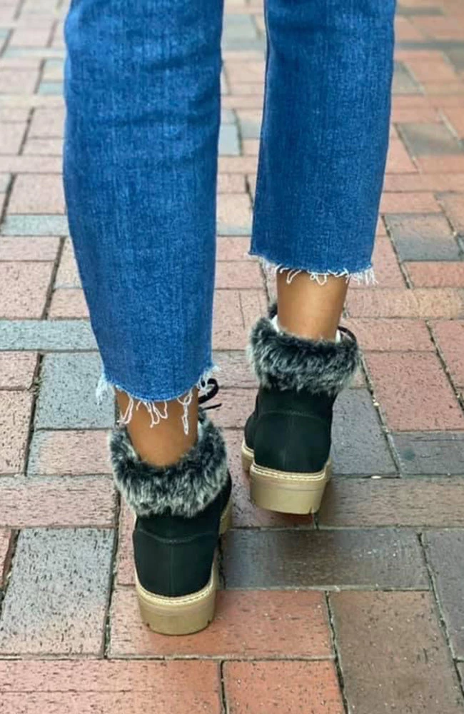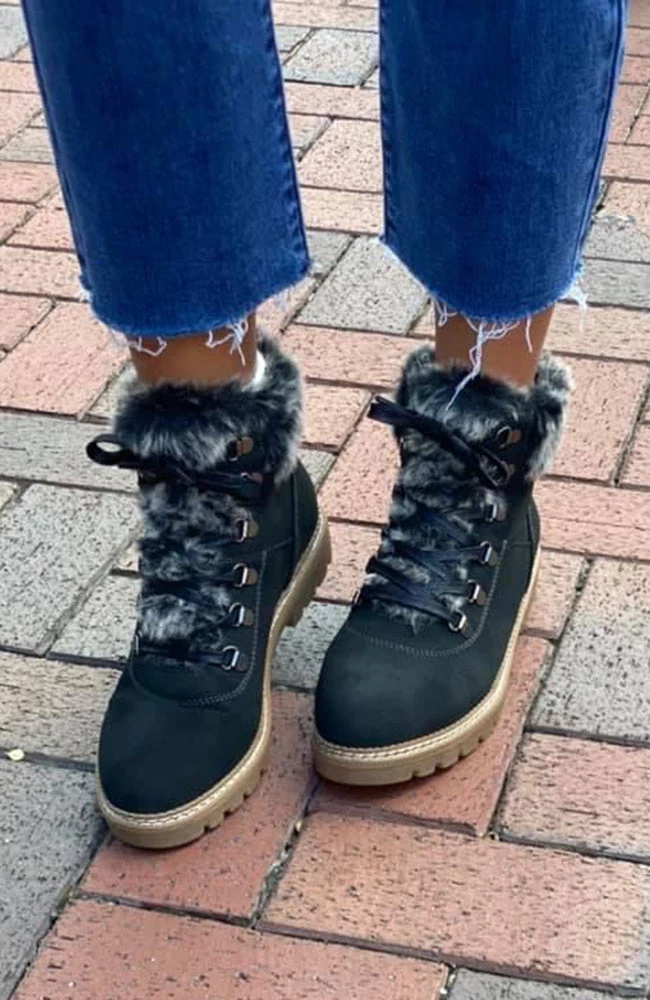 Are you looking for the cutest pair of winter lace-up boots for those cold winter days? Check out our super cute Dani black faux fur lace-up boots