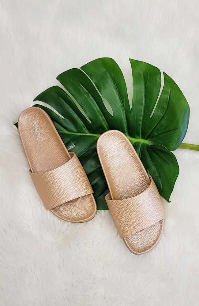 Are you ready to step up your style by the pool this summer? You will look and feel great in our new gold pool slides