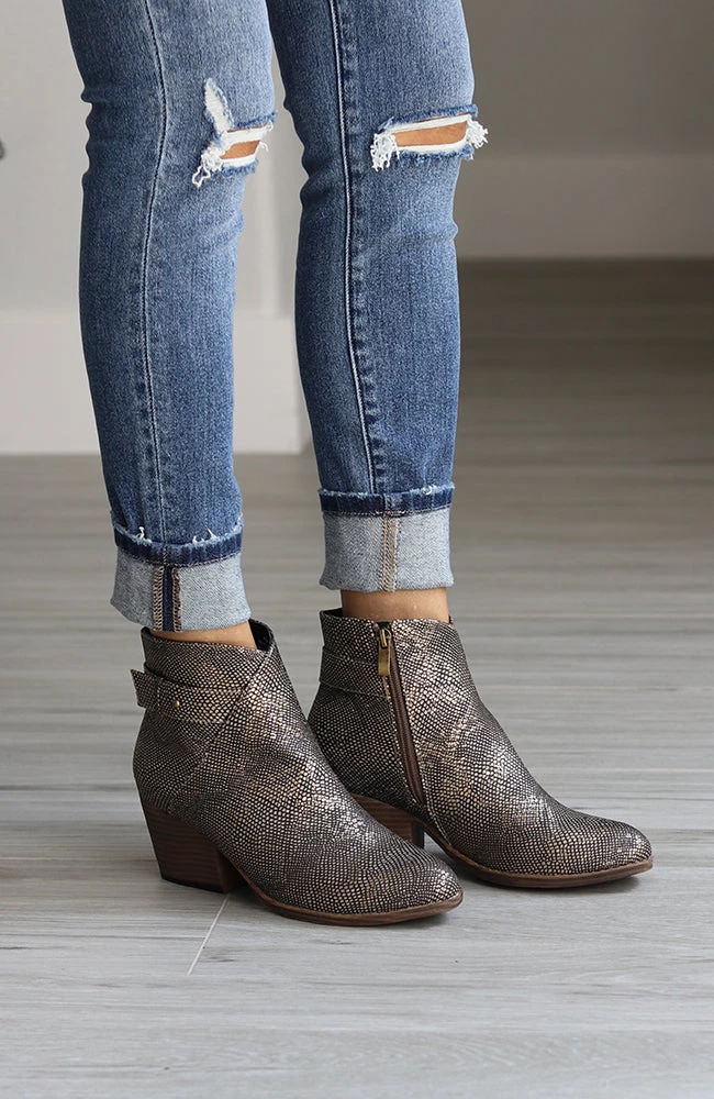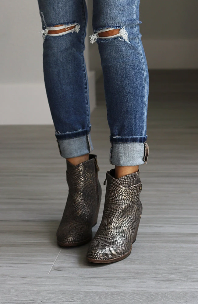 Are you searching for a stylish and edgy bootie? Check out our Regina gunmetal ankle boots