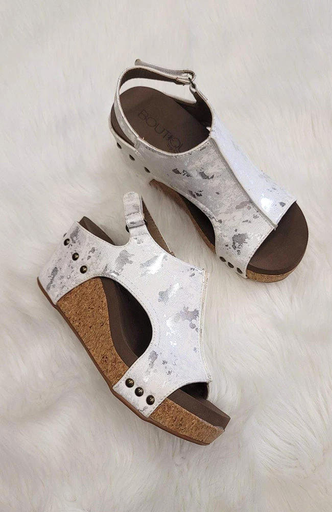 Are you looking for a comfortable and stylish fall wedge that will look great with pretty much every outfit you pair them with? Check out our white metallic London wedge