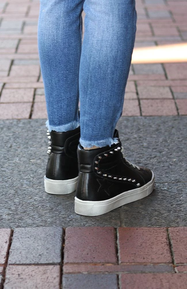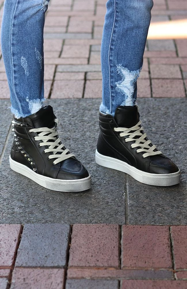 Are you ready to show them your rebel side? You will with our black studded high top shoes.