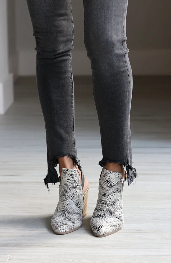 Are you looking for a great mule style shoe? Check out our snakeskin mule with charcoal buckle
