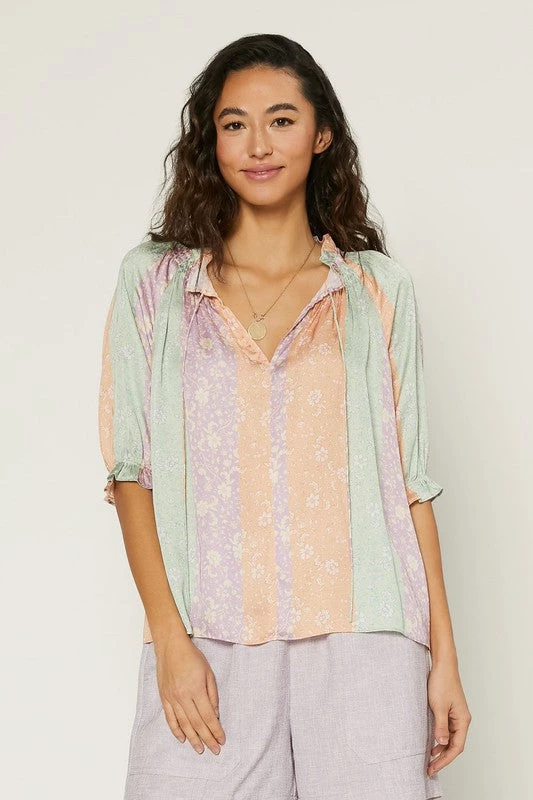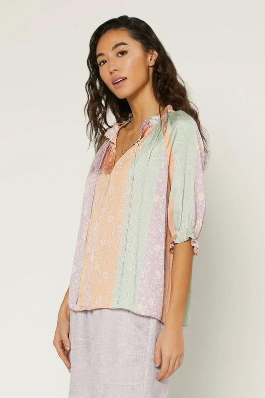 We are in love with our new pastel color block split neck top. Pair it with your favorite relaxed pants or denim for an amazing look