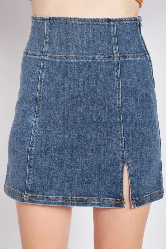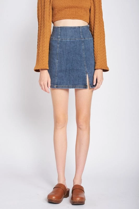 Are you looking for a super cute denim mini skirt that will look great with your favorite fall tops? Check out our side slit denim mini skirt
