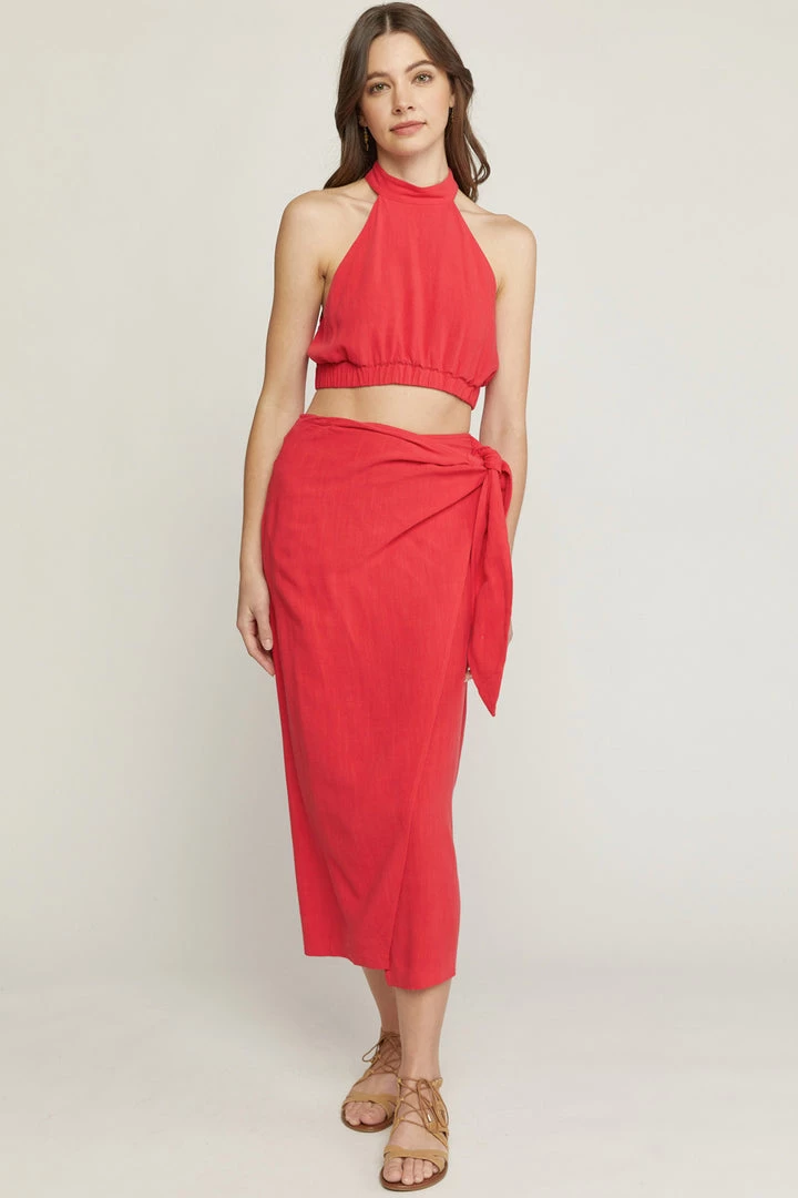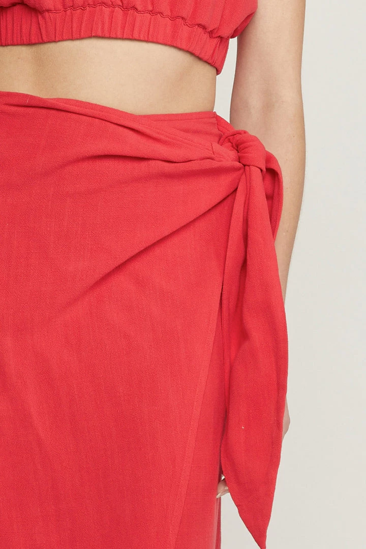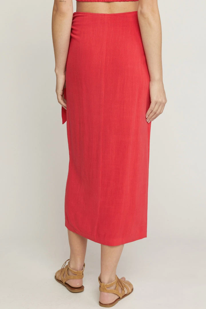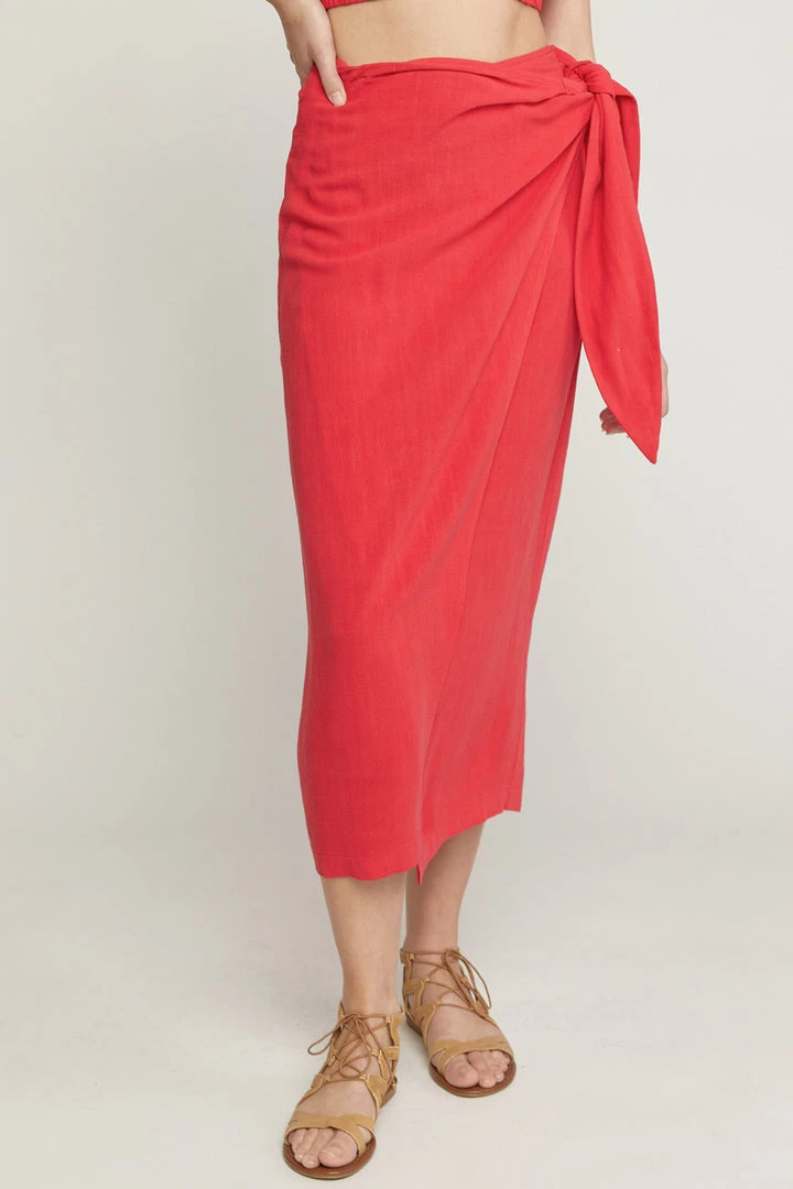 Are you looking for a super cute skirt that is perfect for a vacation by the water or your weekend event outside? You will love our solid red sarong midi skirt
