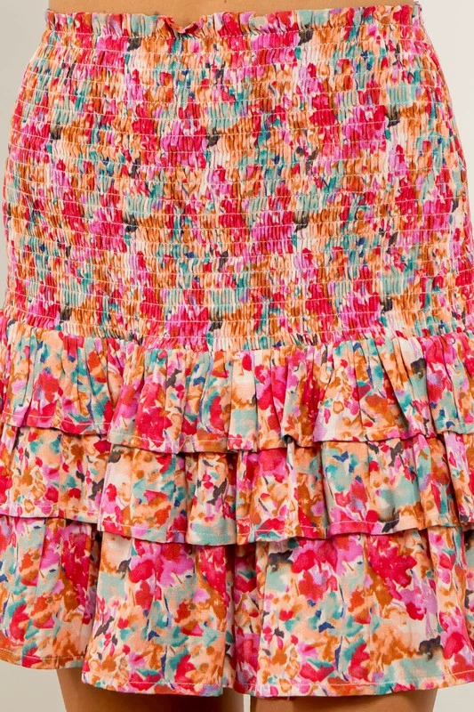 Are you looking for the most darling floral smocked skirt to match your favorite summer tops? You will love our pink and floral multi design smocked mini skirt