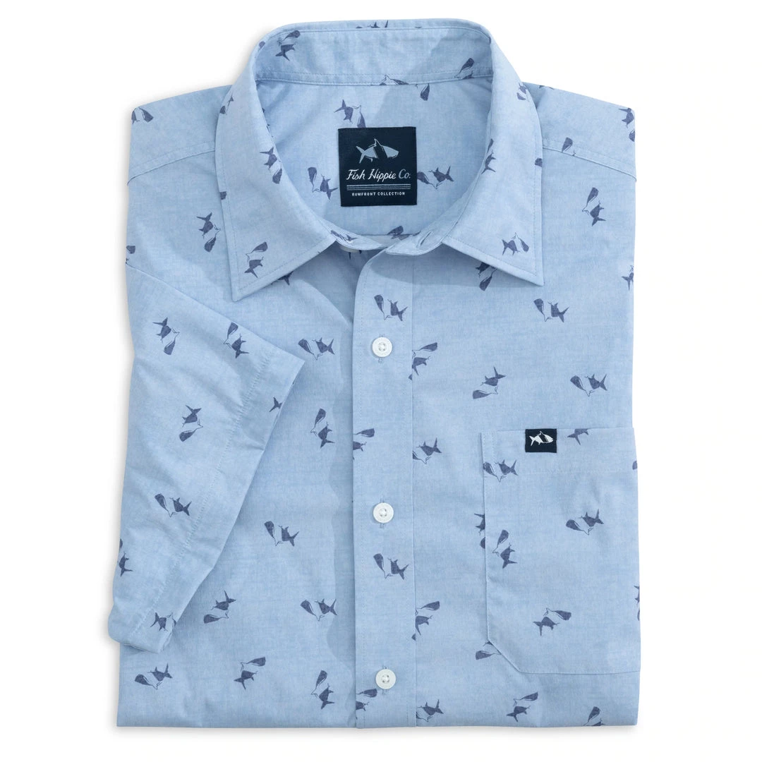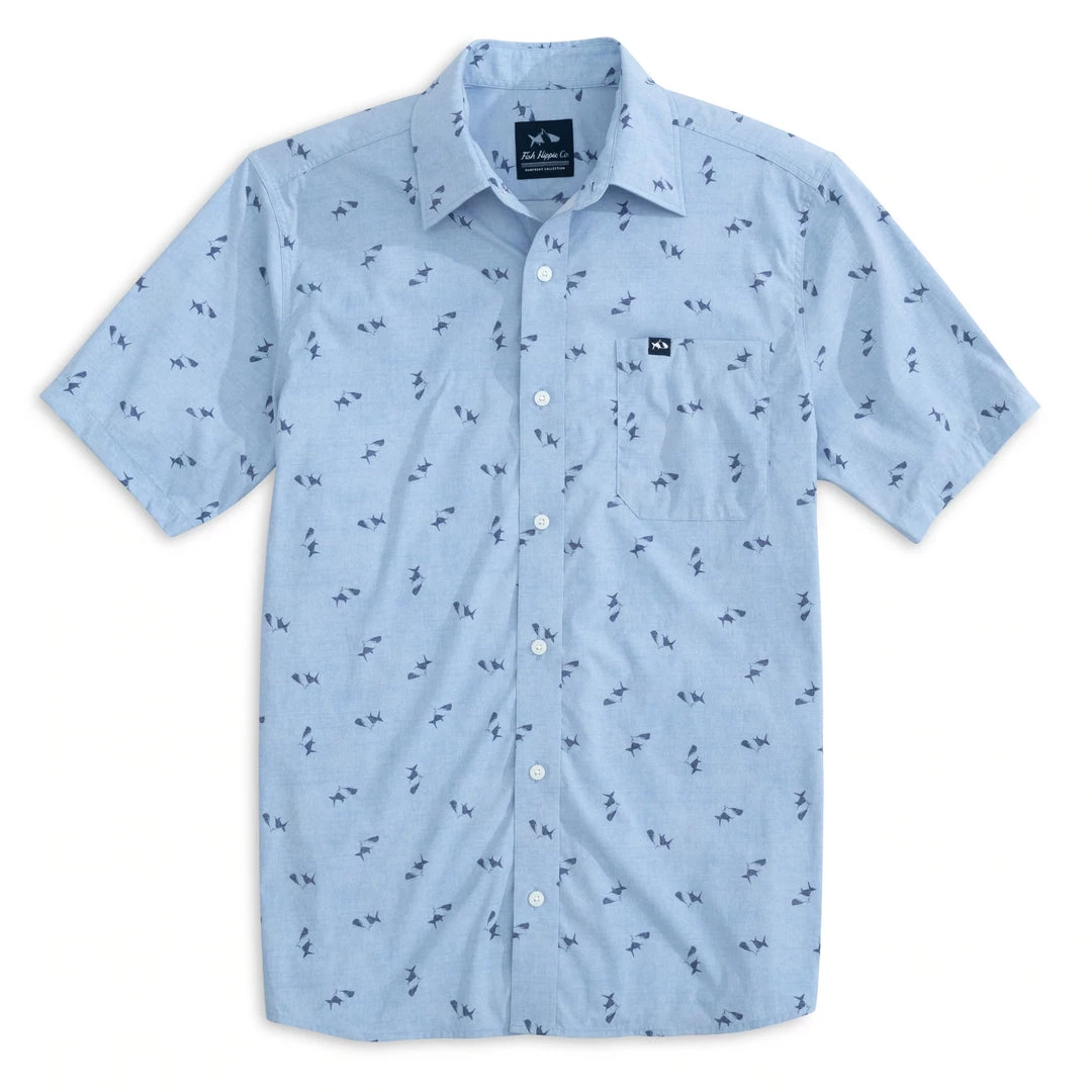 Are you searching for a killer short sleeve button-up shirt? Check out our Carolina blue Rowe printed short sleeve button up shirt. Perfect for date night, vacation vibes or pool side