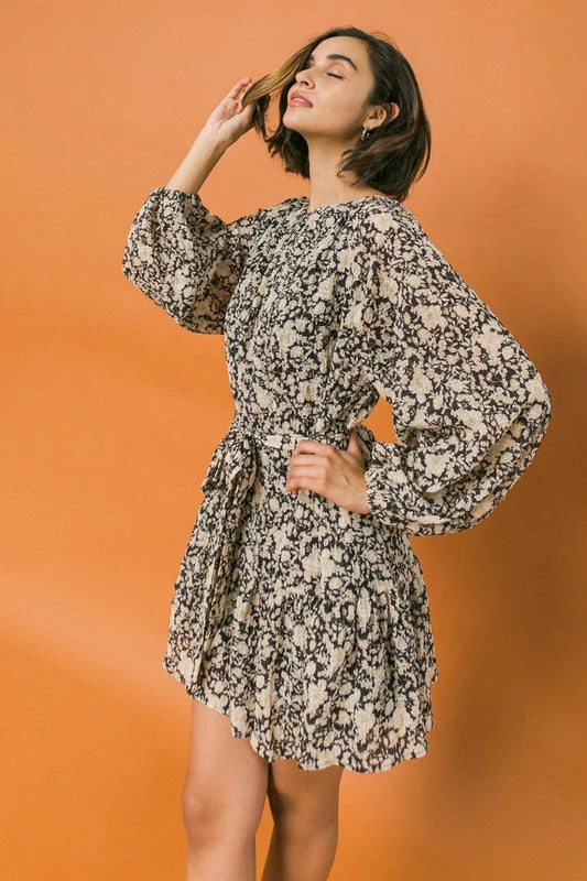 Are you looking for the perfect fall dress? You are going to love our black and taupe printed mini dress