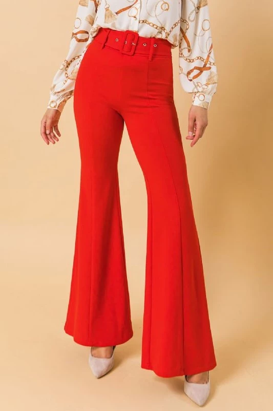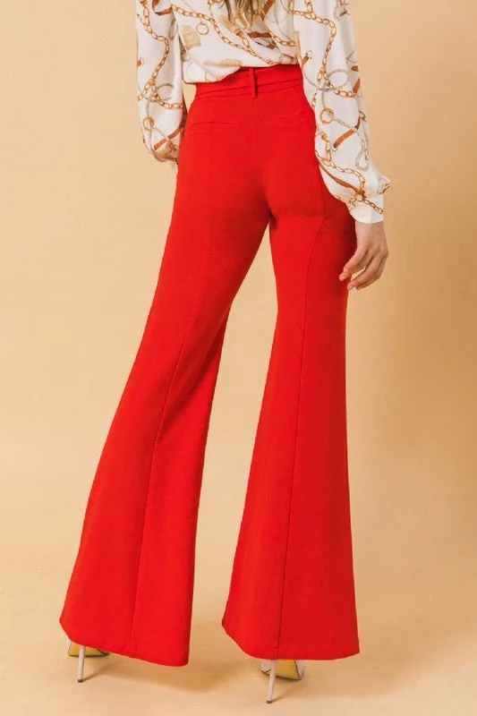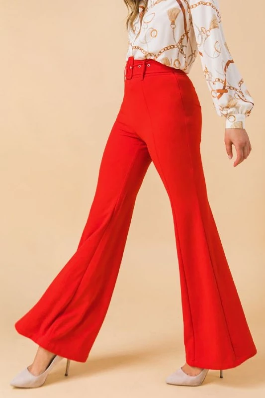 Are you searching for a pair of pants that say I am here to make a statement? You surely will with our solid red woven flared pants