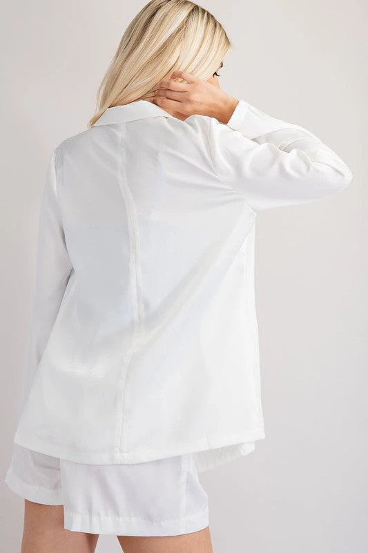 Are you looking for a super cute boyfriend blazer? You found it! You will love our white colored boyfriend blazer with your favorite shorts or denim this summer