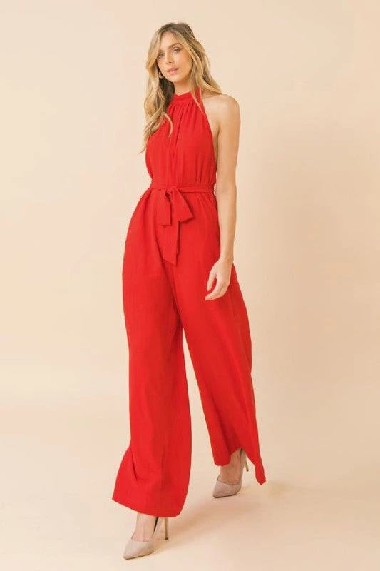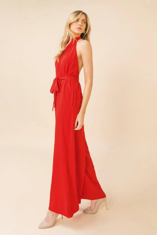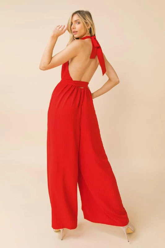 Are you ready to demand the room when you enter it? You surely will with our solid red woven jumpsuit paired with your favorite heels