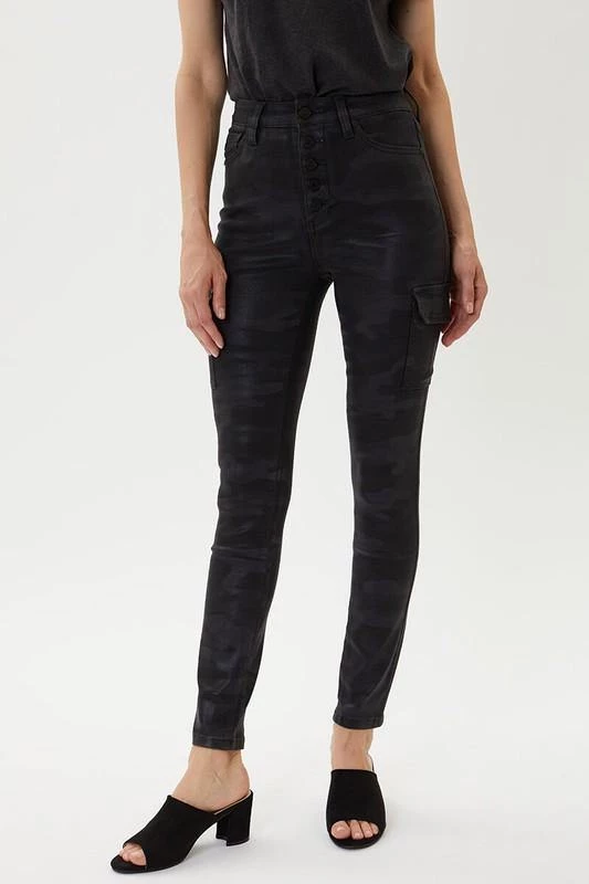 Are you always searching for a unique pair of denim jeans? Check out our Bethany black camouflage print cargo skinny denim jeans