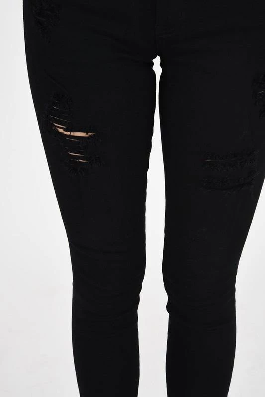 Looking for a pair of great black denim jeans? Try our black modern raw skinny jeans. These jeans are distressed in the thighs and also have a slight stretch to them.