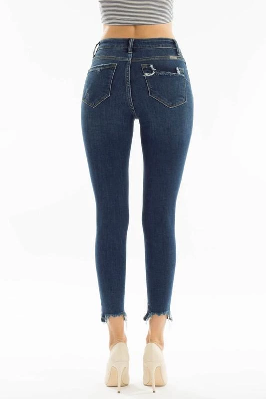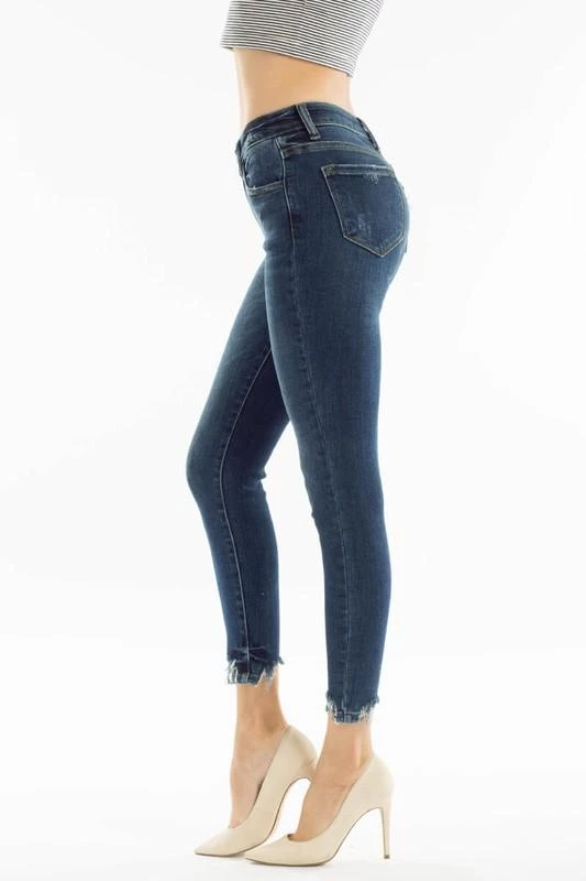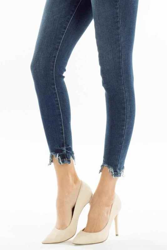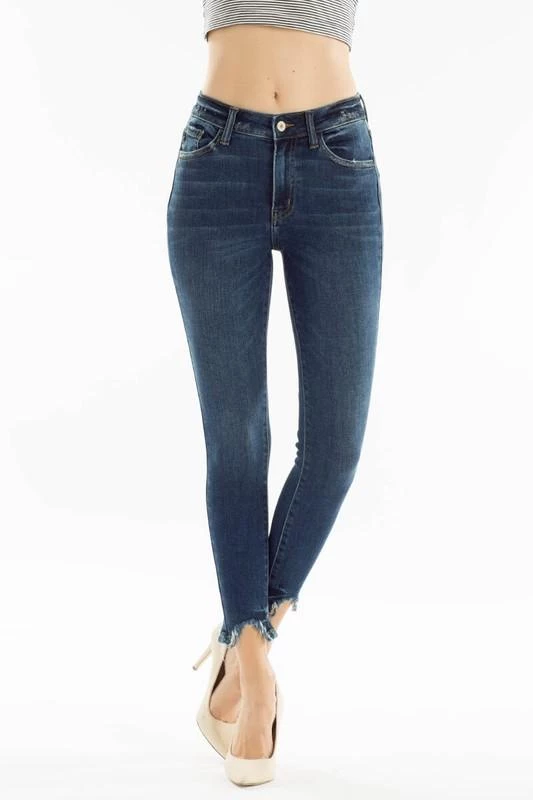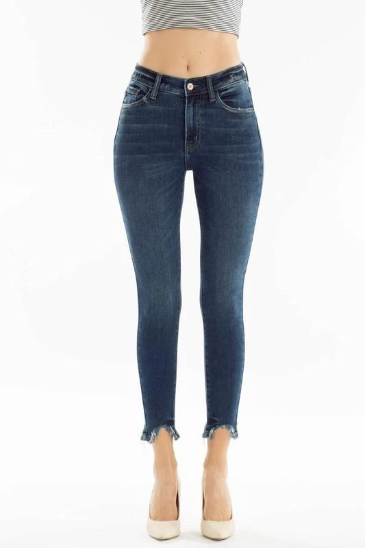 Are you searching for a great pair of denim without a lot of distress? Check out our Denise dark high rise skinny ankle jeans