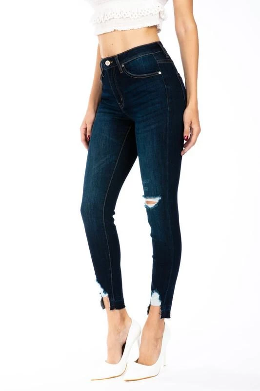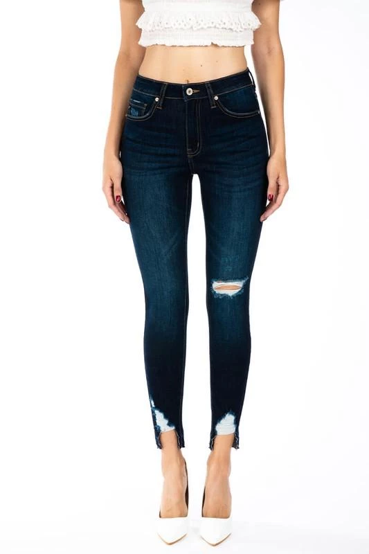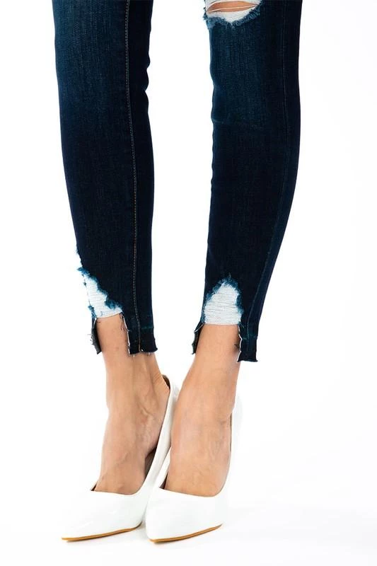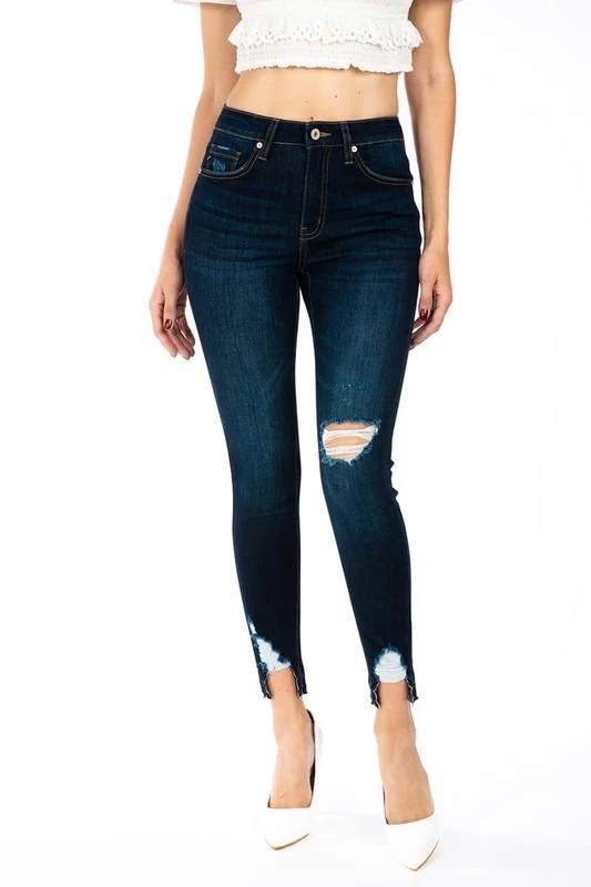 Are you searching for some dark denim jeans with just the perfect amount of distress? Check out our Gemma high rise skinny ankle jeans