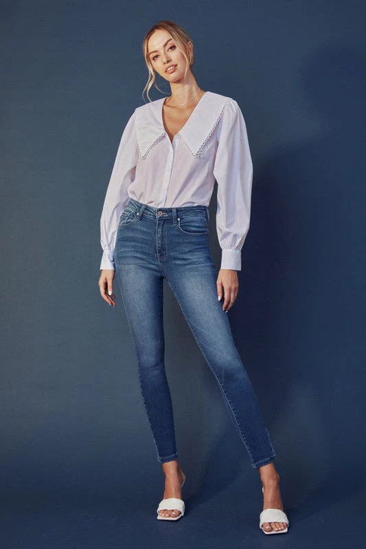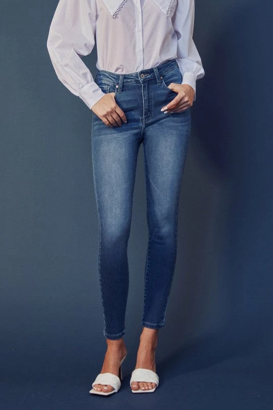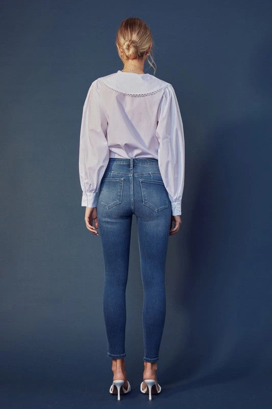 Are you looking for the perfect pair of skinny jeans with no distress and the perfect color of blue denim to match your favorite outfits? Check out our Harley high rise super skinny jeans