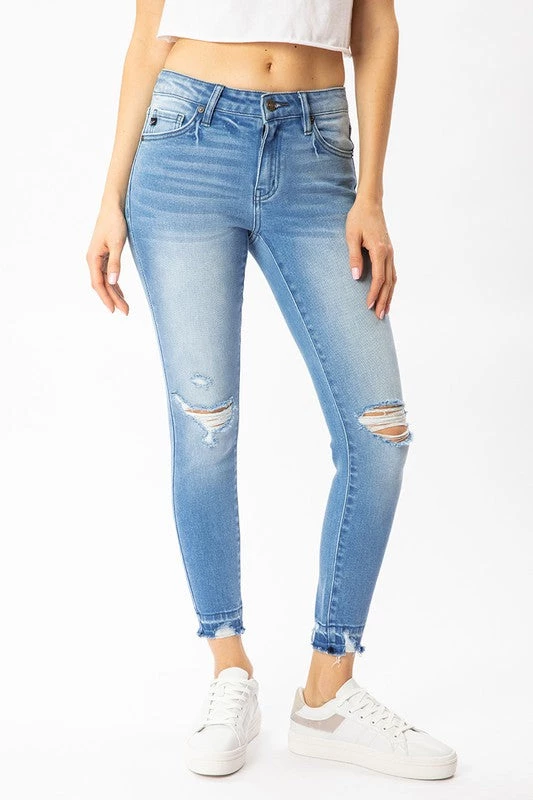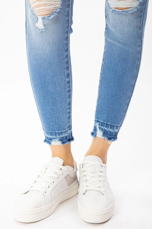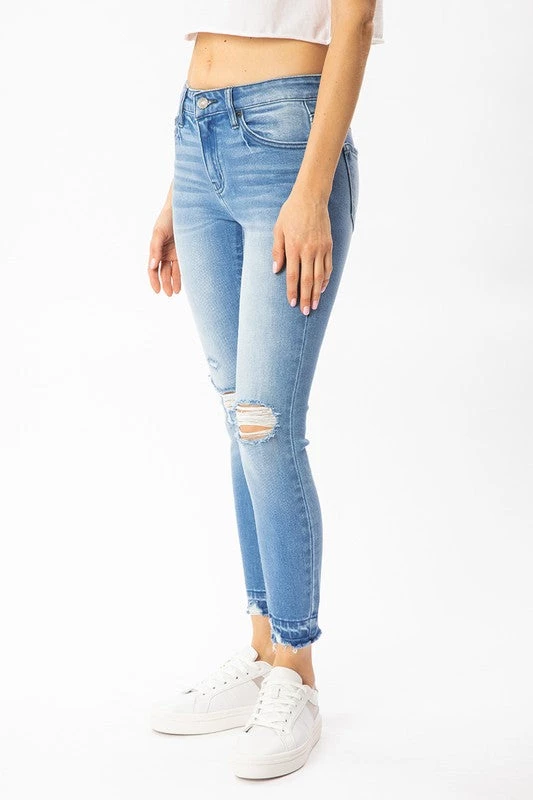 Are you looking for your new favorite summer skinny jeans with the perfect amount of distress to pair with your favorite sneakers or sandals? You will love our Maya mid rise distressed skinny jeans