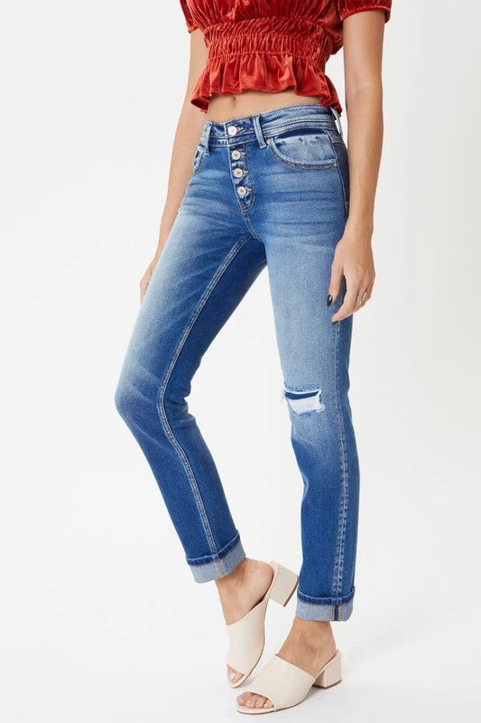 Are you always looking for a cool pair or button flys? Check out our Sandra mid-rise button fly skinny straight jeans
