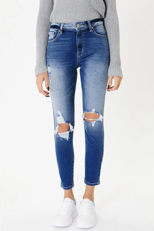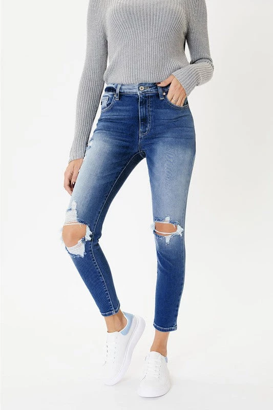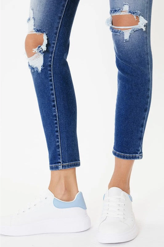 Are you looking for a great pair of jeans that look great with booties or sneakers? Check out our Sharon high rise distressed skinny jeans