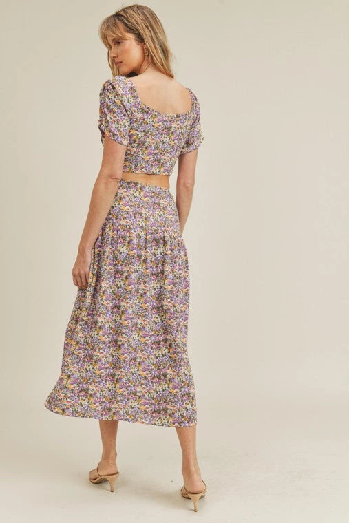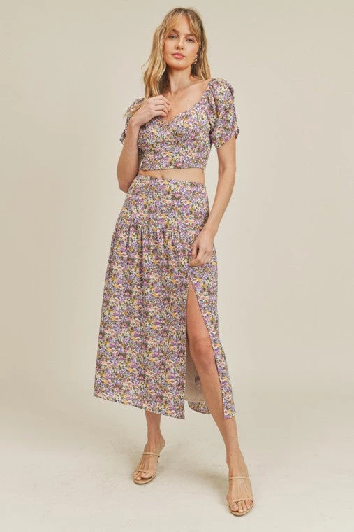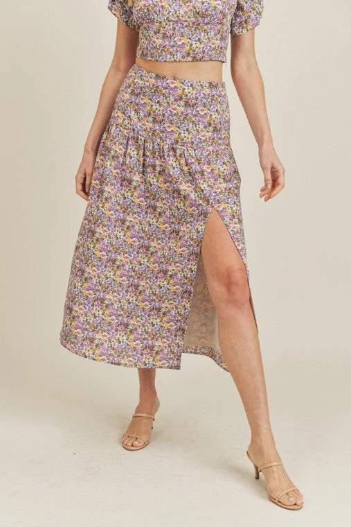Are you looking for the most darling midi skirt that will look fantatic with your favorite summer tops? You will love our purple grand floral midi skirt
