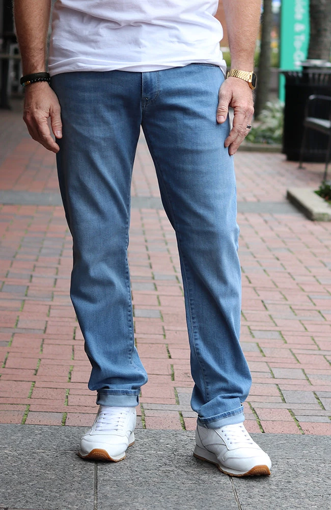 Are you looking for a great pair of lightweight straight-legged jeans that will look great with your favorite sneakers or dressed up with your lace-up shoes for the office? Check out our Marcus light brushed supermove jeans