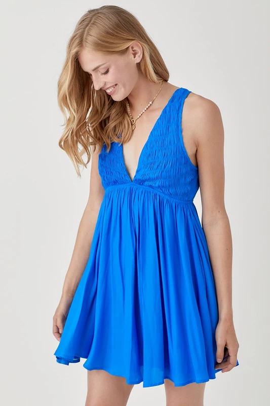 Are you looking for a super cute sleeveless dress for your summer event? We are in love with our Maldive blue v neck smock sleeveless dress