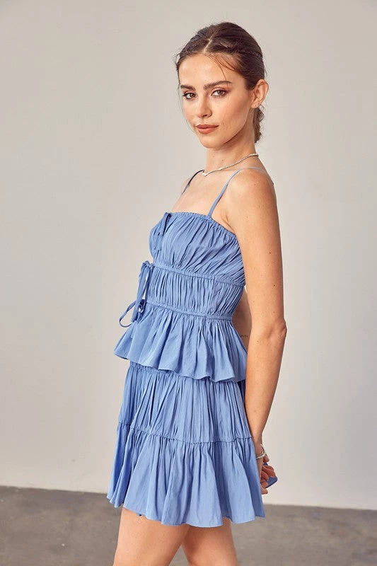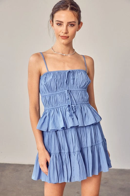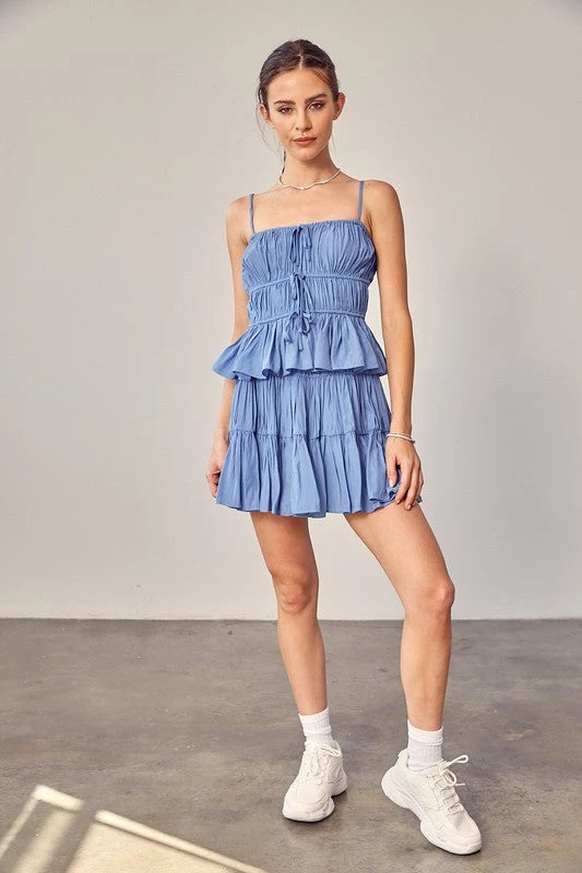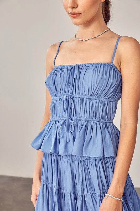 Are you searching for the perfect light denim cami? You found it with our soft denim drawstring ruched cami top
