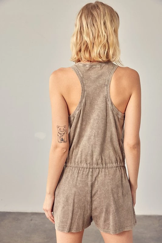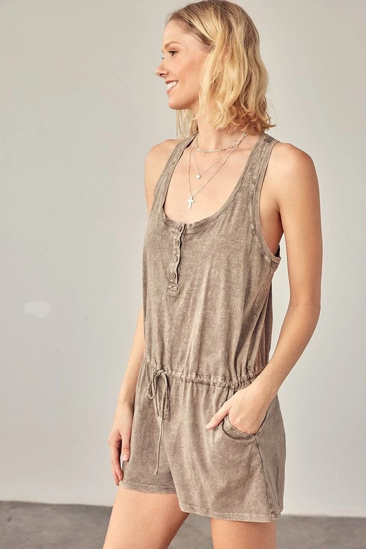 Are you looking for a super relaxed and stylish romper? We are loving our new truffled colored front button up sleeveless romper with your favorite heels or dressed down with white sneakers