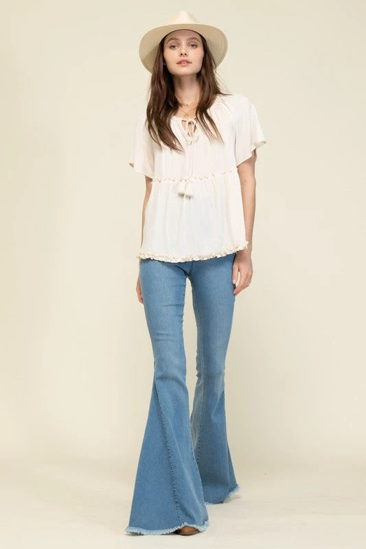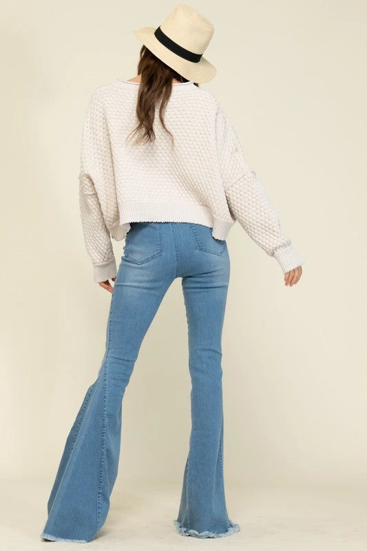 Are you tired of your skinny jeans and need some bell bottom jeans in your life? Check out our super cute Demi denim bell bottom jeans