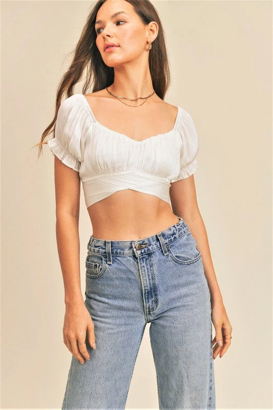 Are you looking for a super cute black cropped top with some style to it? You will fall in love with our super cute white cropped back tie detail top