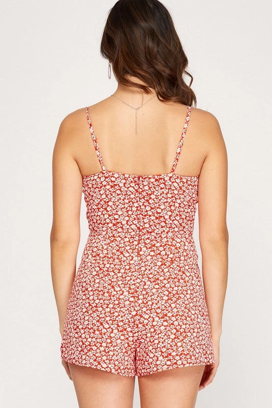 Are you excited about summer and a cute romper? You will love our new red and floral print sleeveless romper paired with your favorite wedges or white sneakers for the perfect look