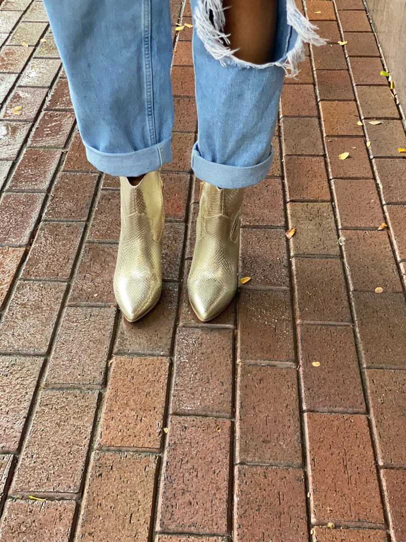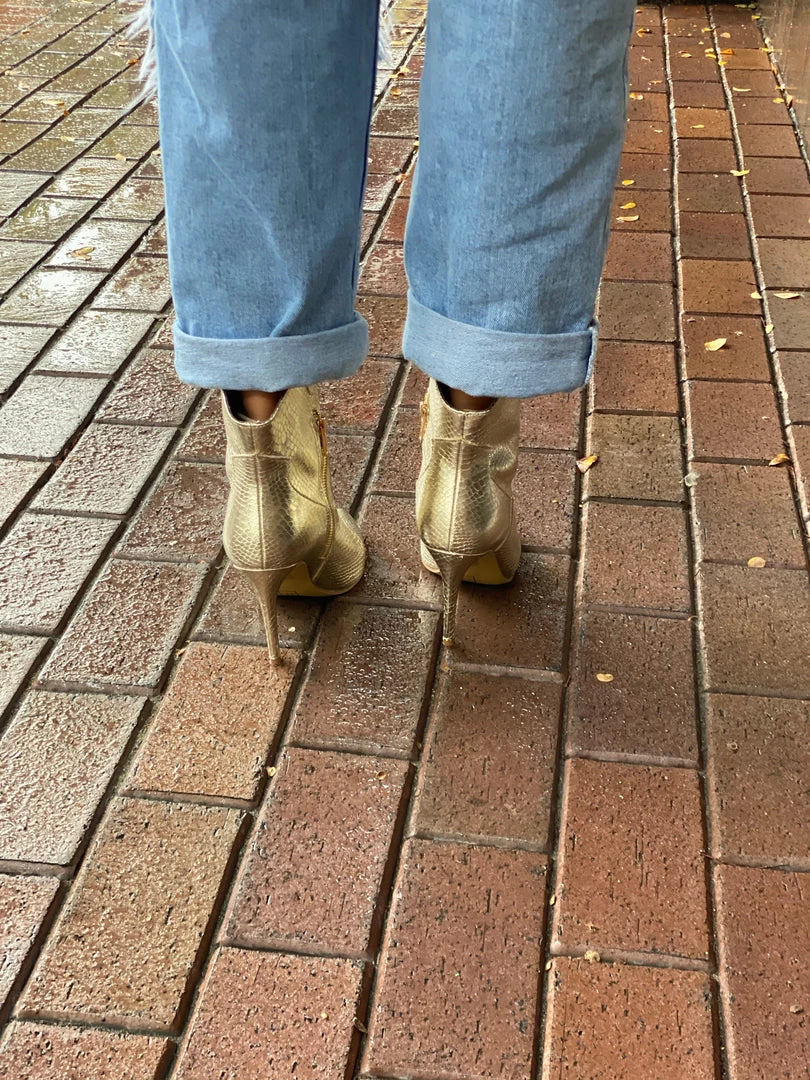 Are you searching for a super hot and stylish pair of boots that will catch your eyes as soon as you enter the room? Get ready to be asked where you got your Foxxy Cleopatra gold high heel booties