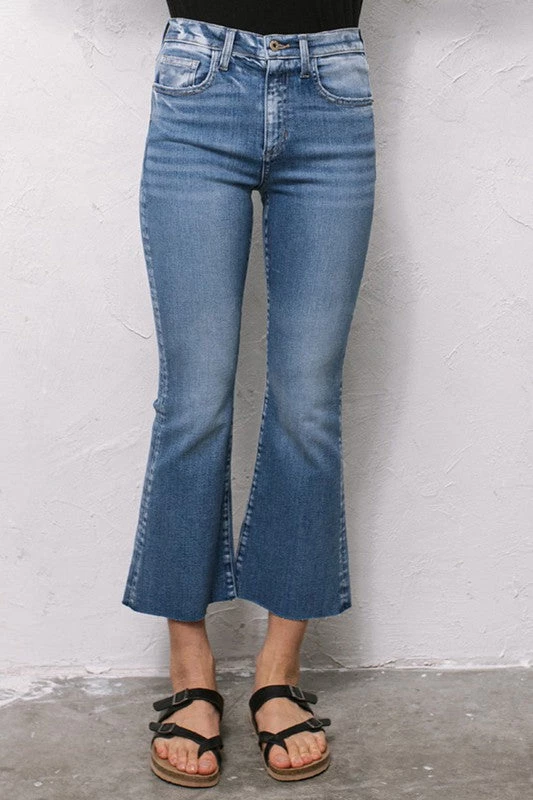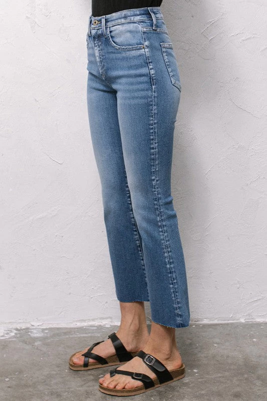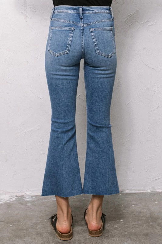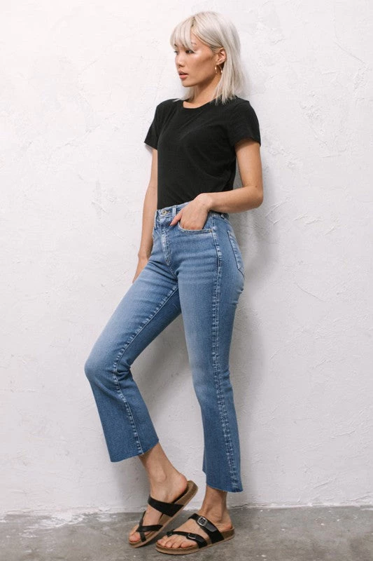 Are you looking to change things up from your standard skinny jeans? You will love our new Holly high rise cropped kick flare raw hem jeans