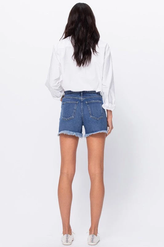 Are you searching for a pair of denim shorts that aren’t too short? Check out our Melissa medium wash high rise denim shorts
