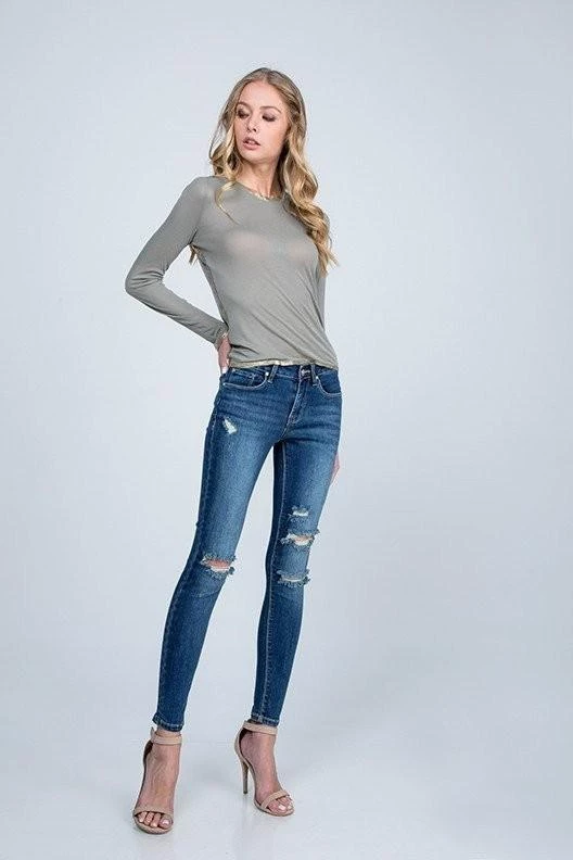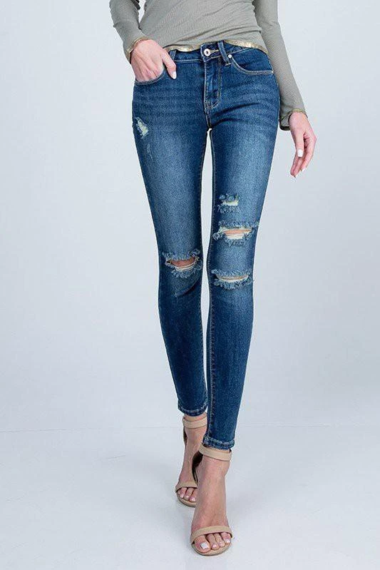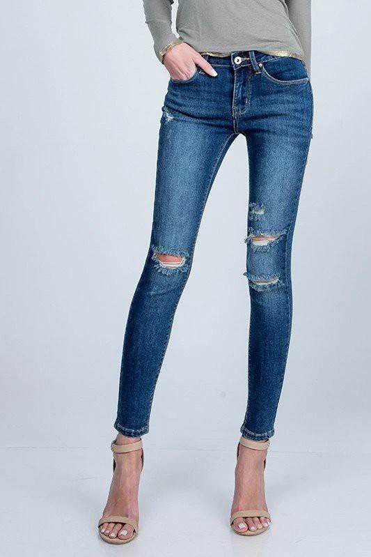 Are you searching for some denim with style and edge? Check out our Maci mid-rise skinny distressed jeans