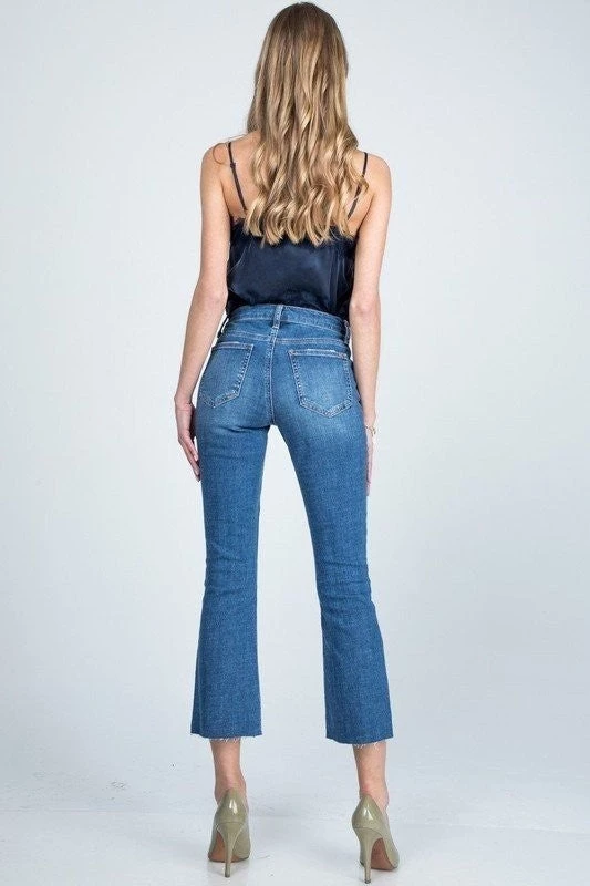 Are you looking for some new denim with some flare? Check out our MaryLynn medium wash mid-rise kick flare jeans