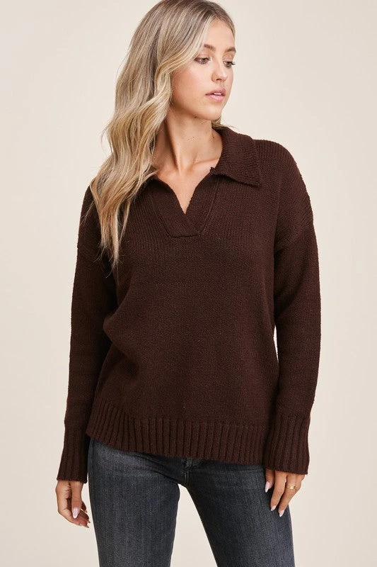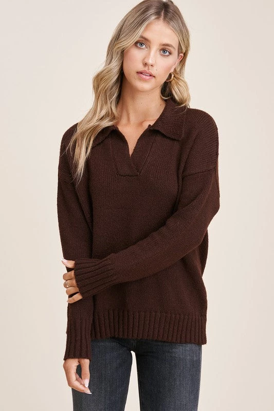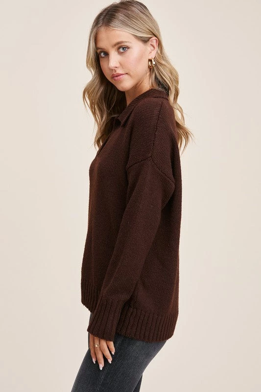Are you looking for a super cute sweater with a great fit? Check out our chocolate split neck pullover sweater