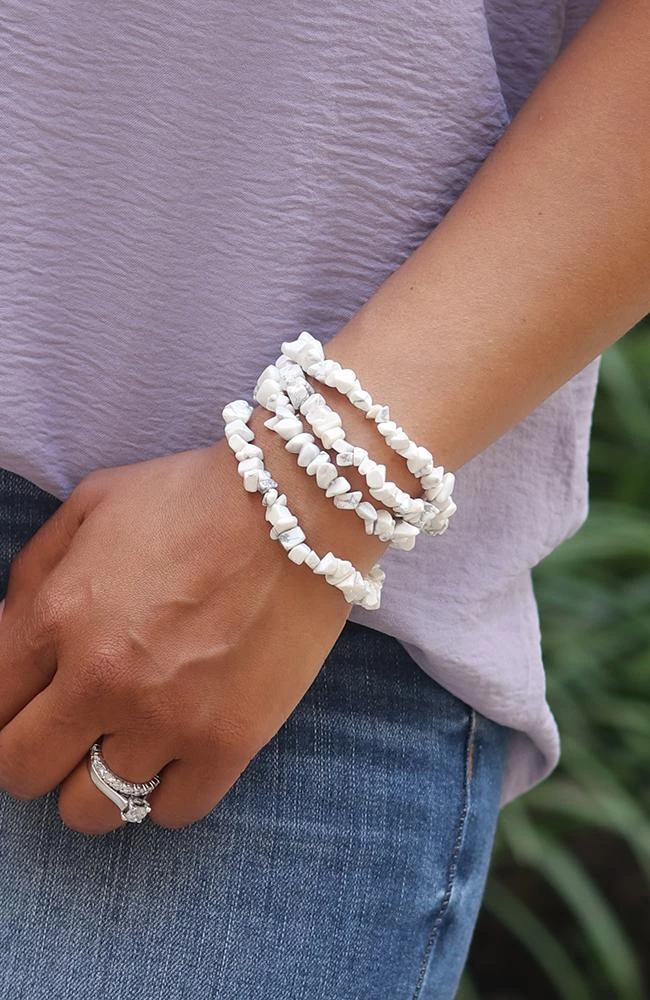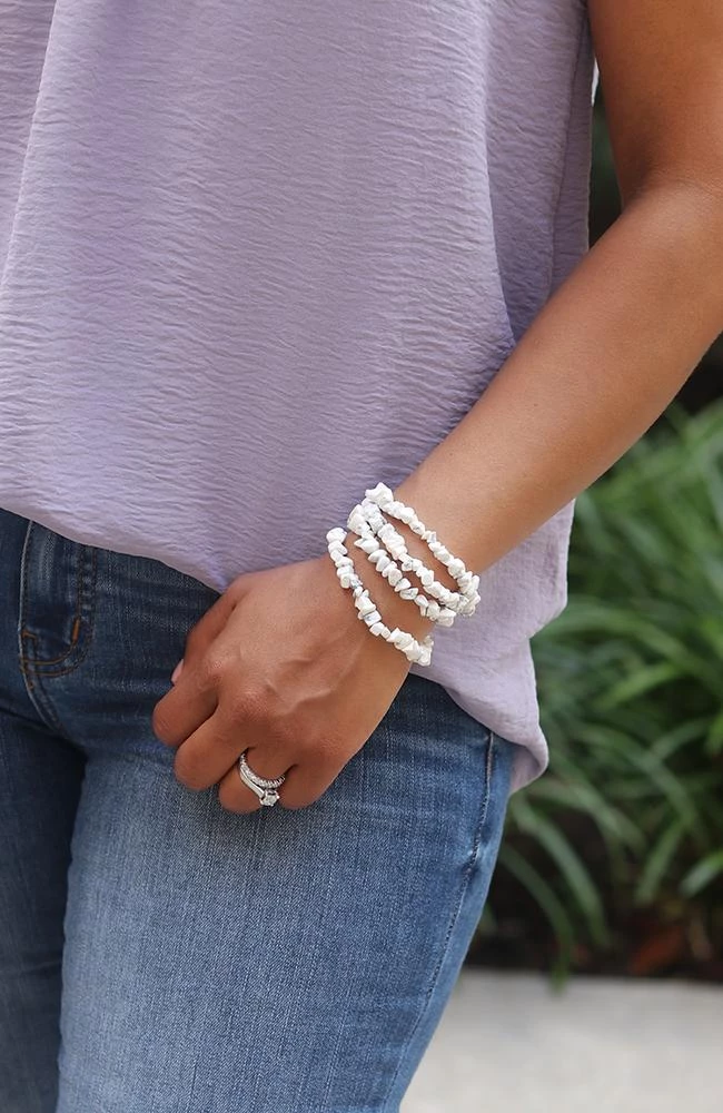 Are you in need of a great neutral accessory that looks great with everything? Check out our white stone accent bracelet