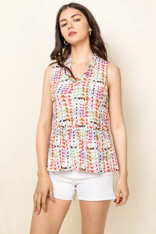 Are you looking for a super cute sleeveless top with some color? You are going to love our multicolor polka dot sleeveless top