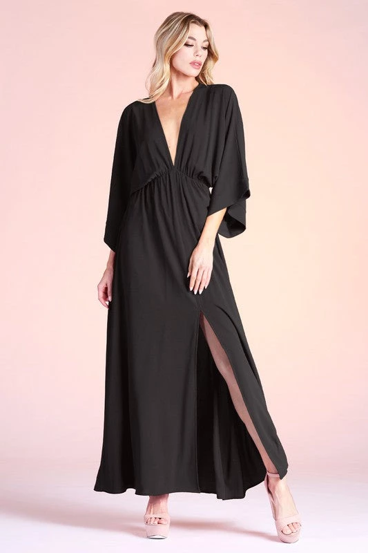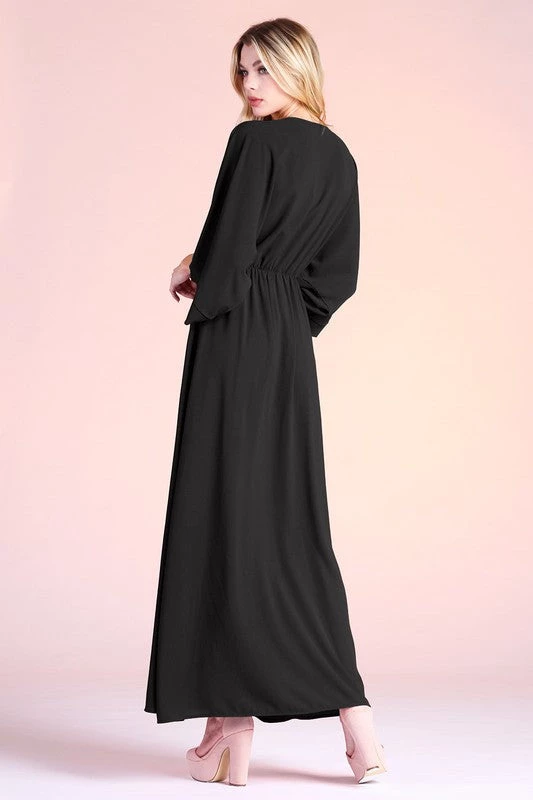 Are you looking for the perfect kimono maxi dress that is elegant and perfect for your next event? You will look and feel amazing in our black colored textured solid kimono maxi dress